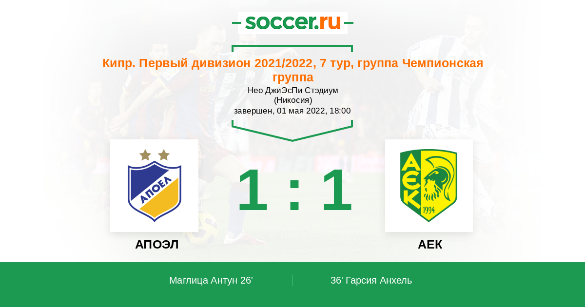 АПОЭЛ - АЕК: обзор матча 1 мая 2022