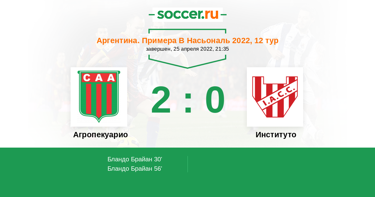 Агропекуарио - Институто: обзор матча 25 апреля 2022