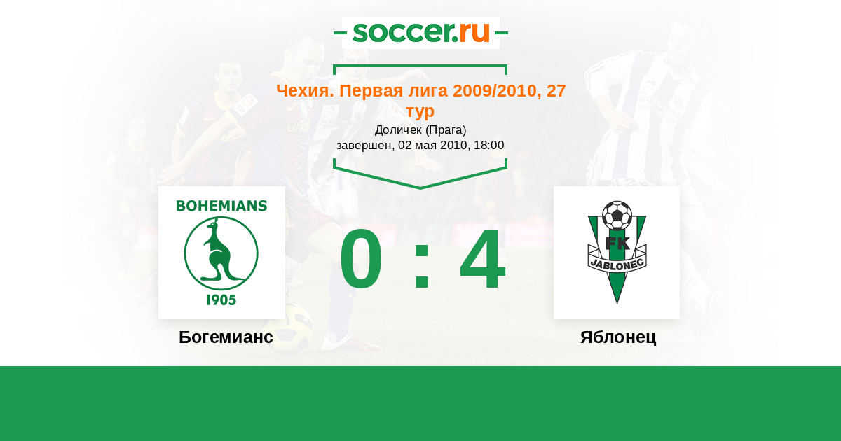 Богемианс - Яблонец: обзор матча 2 мая 2010