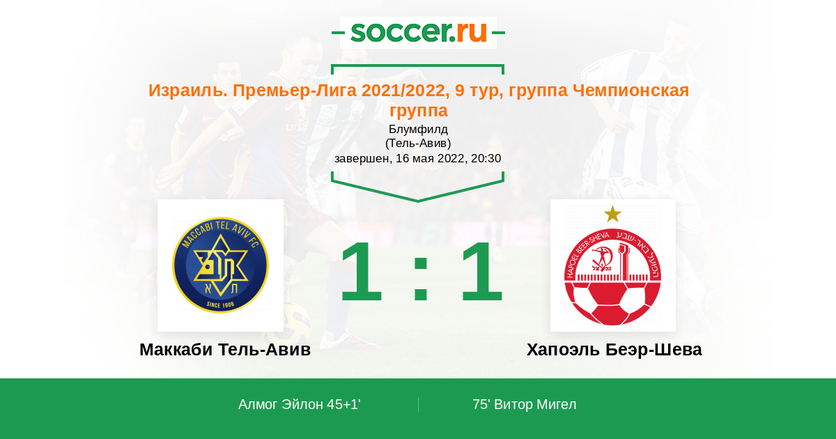 Маккаби Тель-Авив - Хапоэль Беэр-Шева: обзор матча 16 мая 2022