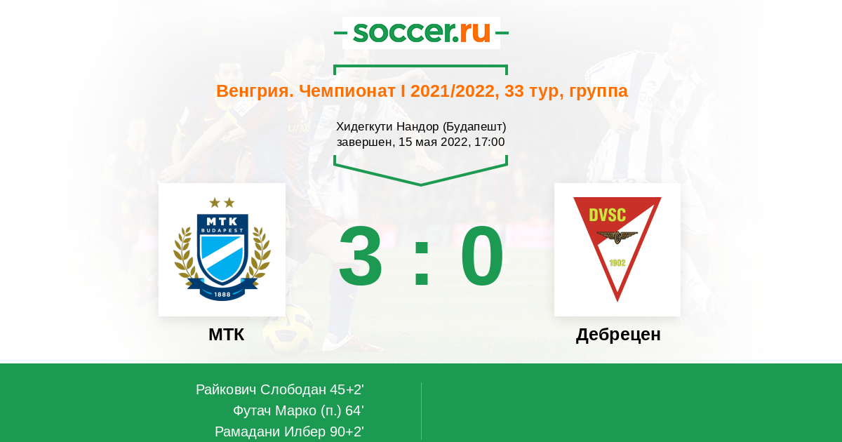 МТК - Дебрецен: обзор матча 15 мая 2022