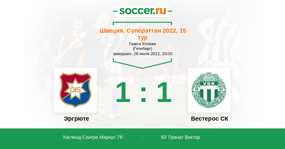 Эргрюте - Вестерос СК: обзор матча 26 июля 2022
