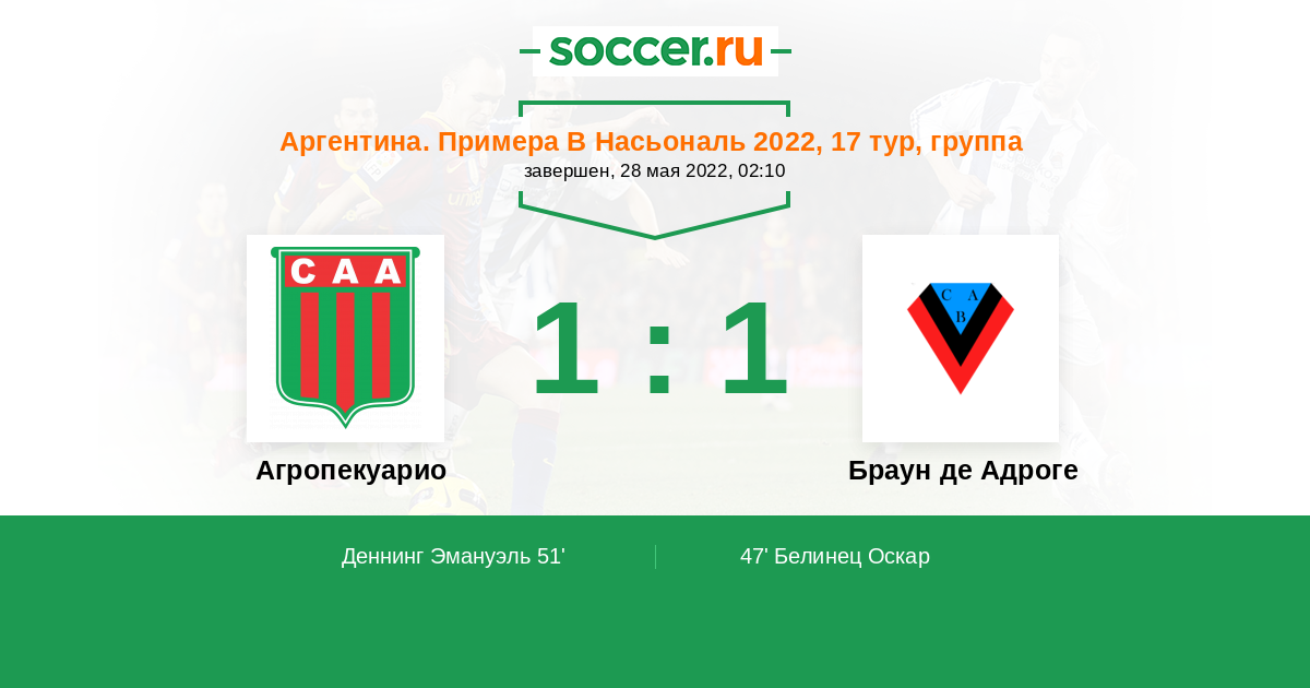 Агропекуарио - Браун де Адроге: обзор матча 28 мая 2022
