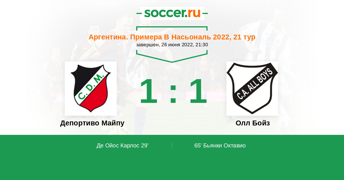 Депортиво Майпу - Олл Бойз: обзор матча 26 июня 2022