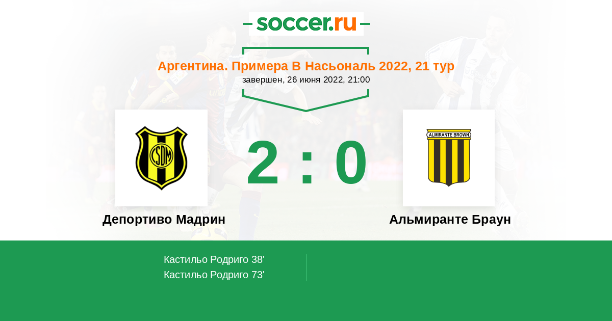 Депортиво Мадрин - Альмиранте Браун: обзор матча 26 июня 2022
