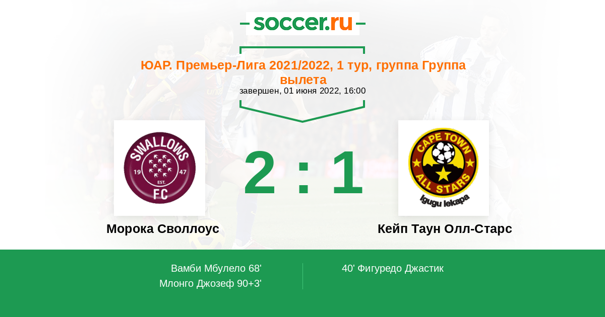 Морока Своллоус - Кейп Таун Олл-Старс: обзор матча 1 июня 2022