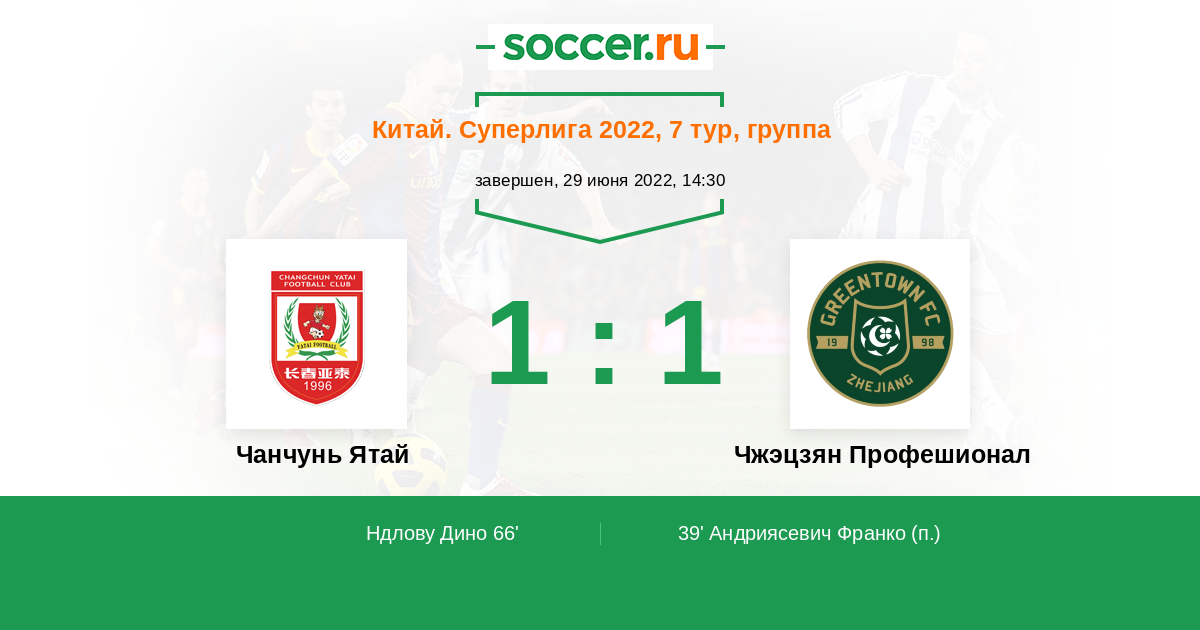 Чанчунь Ятай - Чжэцзян Профешионал: обзор матча 29 июня 2022