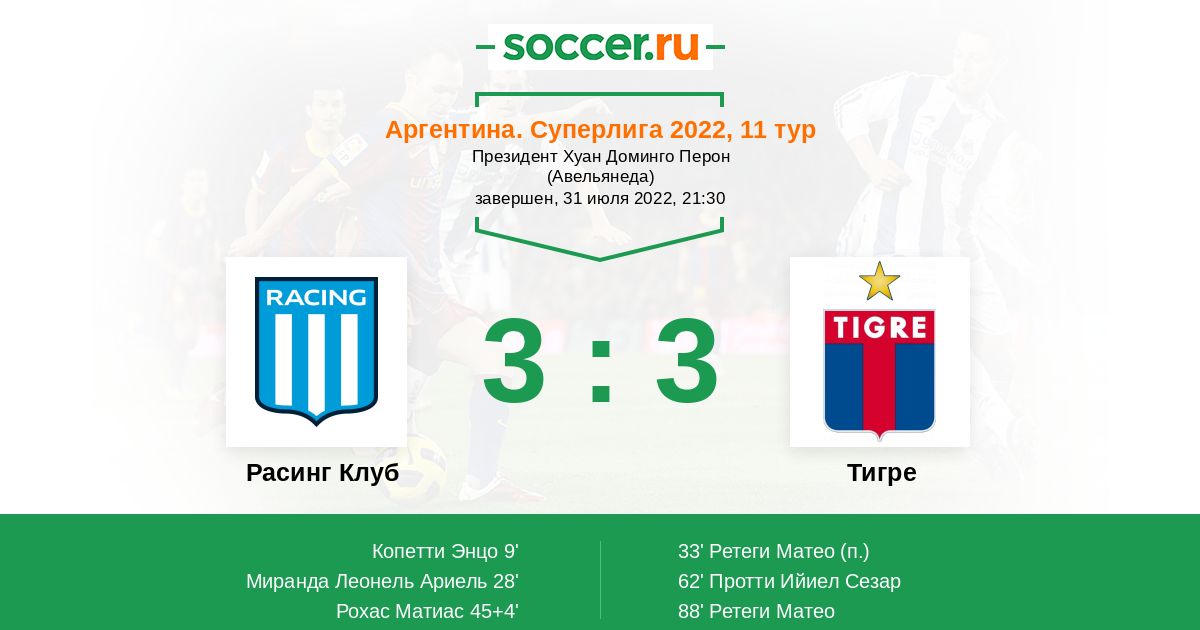 Расинг Клуб - Тигре: обзор матча 31 июля 2022