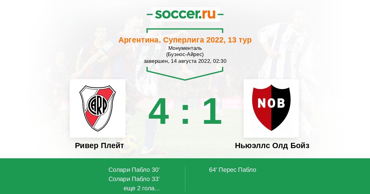 Ривер Плейт - Ньюэллс Олд Бойз: обзор матча 14 августа 2022