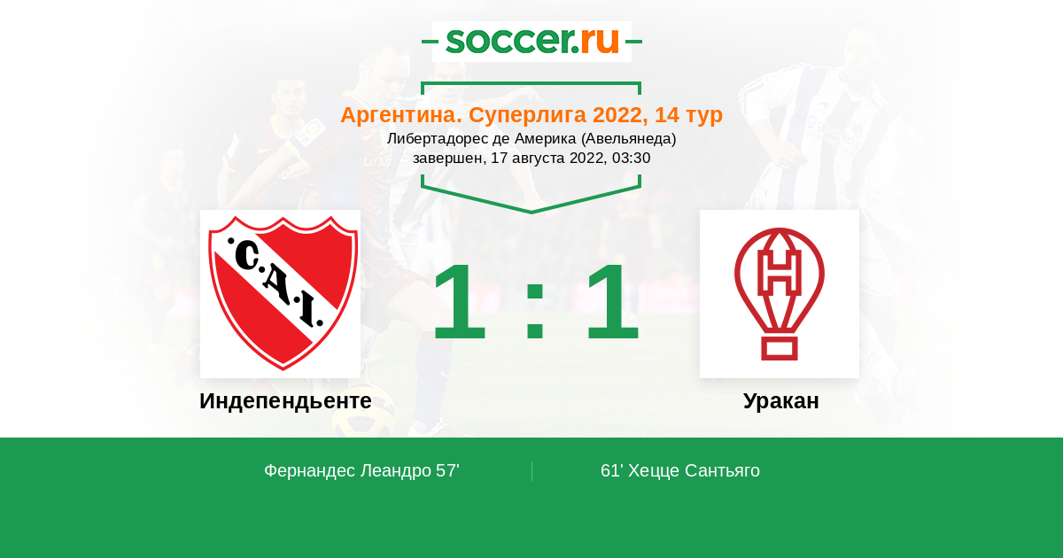 Индепендьенте - Уракан: обзор матча 17 августа 2022