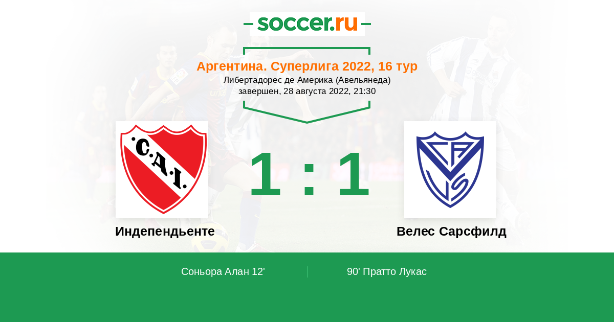 Индепендьенте - Велес Сарсфилд: обзор матча 28 августа 2022