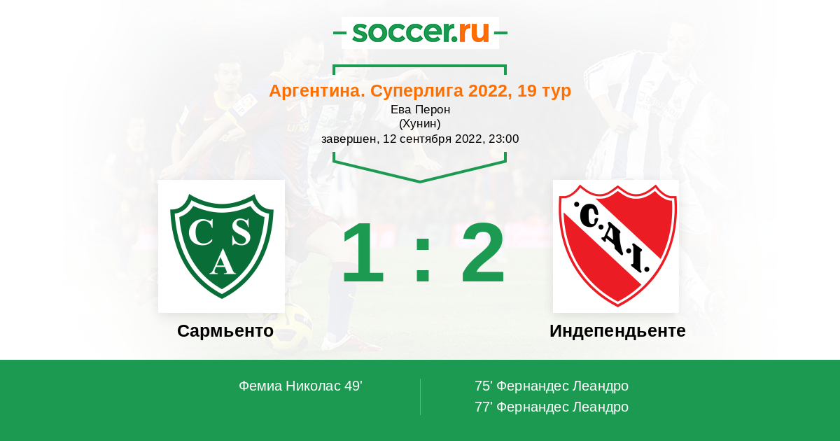 Сармьенто - Индепендьенте: обзор матча 12 сентября 2022