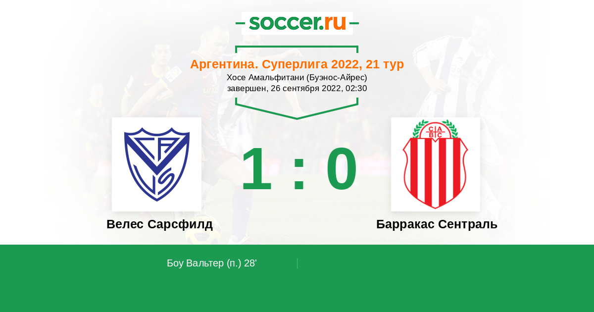 Велес Сарсфилд - Барракас Сентраль: обзор матча 26 сентября 2022