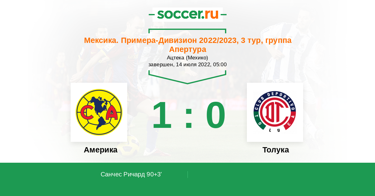Америка - Толука: обзор матча 14 июля 2022