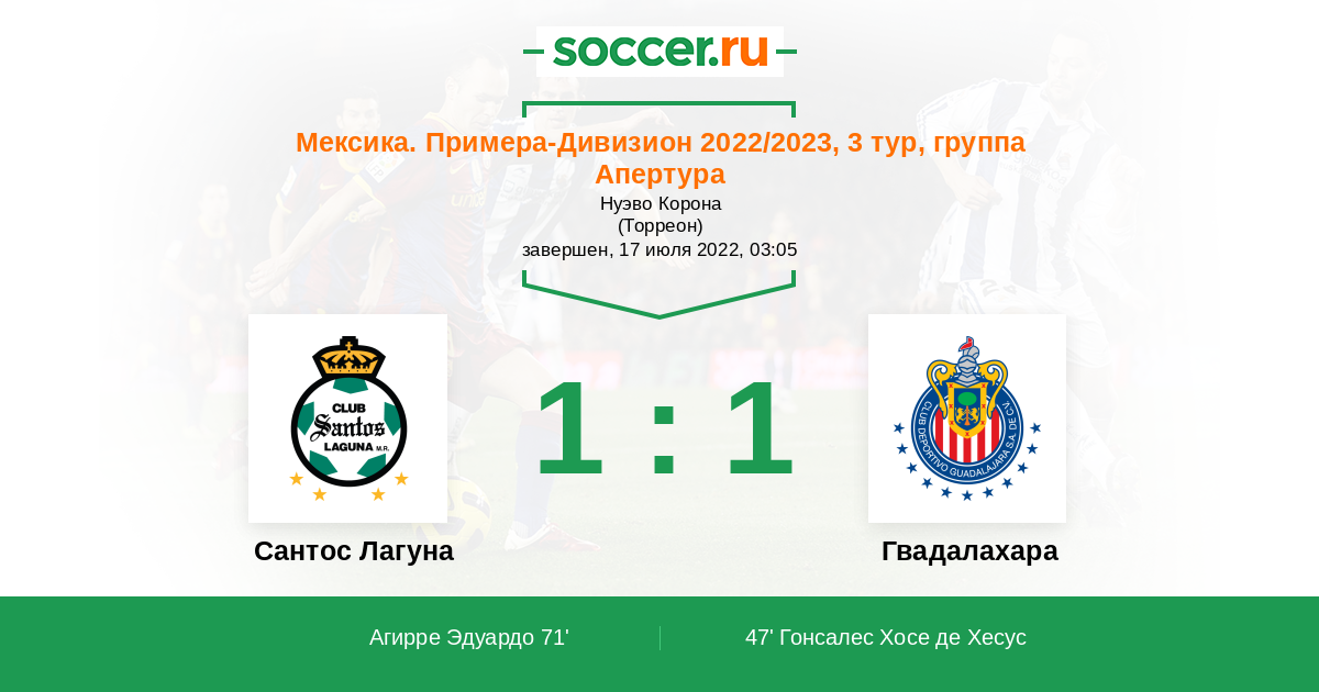 Сантос Лагуна - Гвадалахара: обзор матча 17 июля 2022