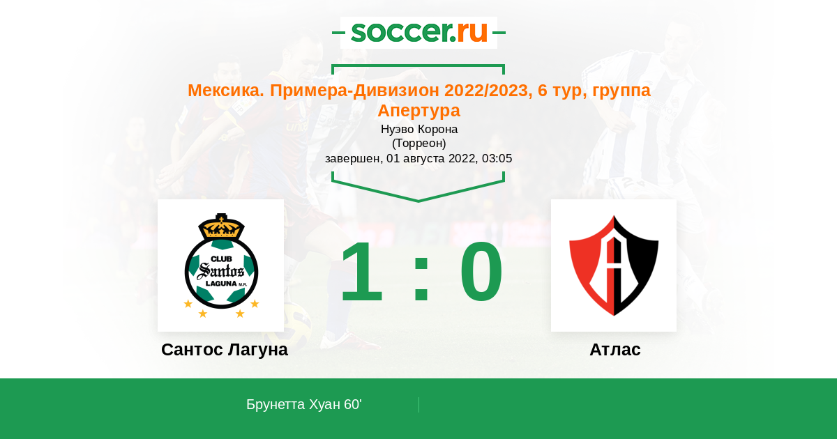 Сантос Лагуна - Атлас: обзор матча 1 августа 2022