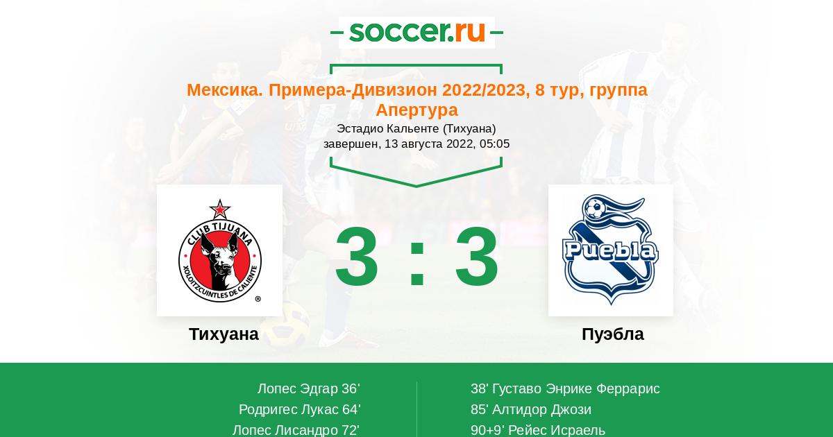 Тихуана - Пуэбла: обзор матча 13 августа 2022