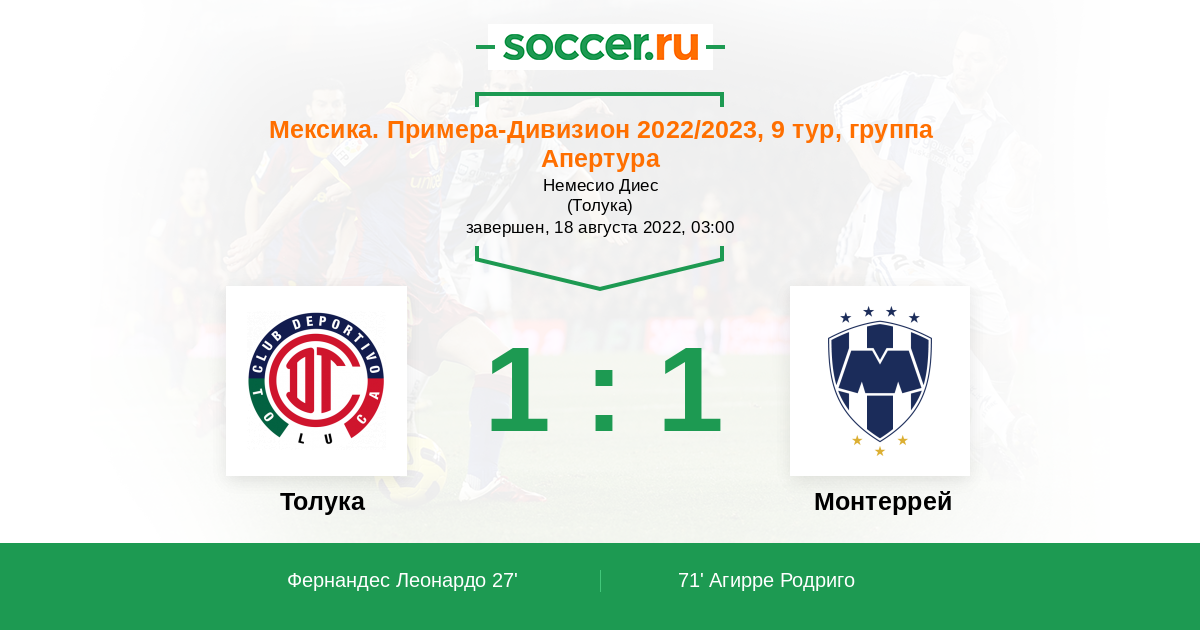 Толука - Монтеррей: обзор матча 18 августа 2022