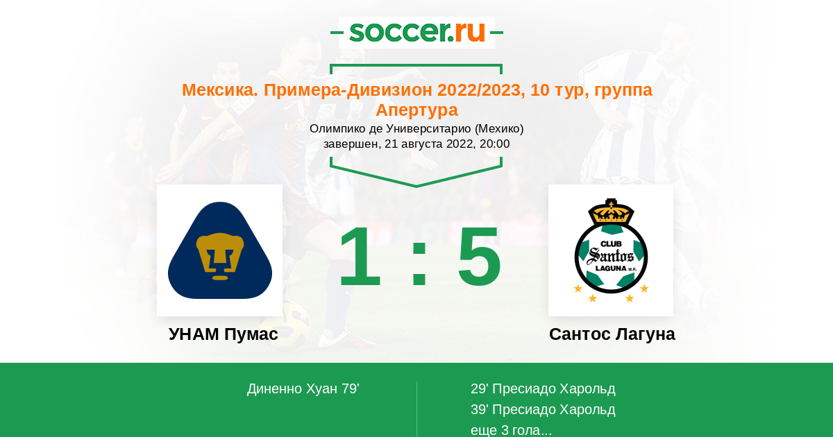 УНАМ Пумас - Сантос Лагуна: обзор матча 21 августа 2022