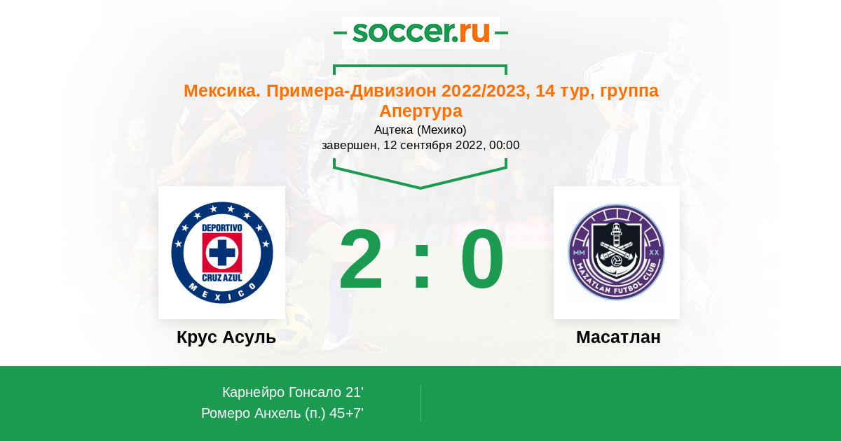 Крус Асуль - Масатлан: обзор матча 12 сентября 2022