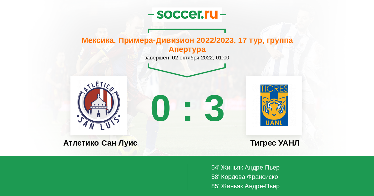 Атлетико Сан Луис - Тигрес УАНЛ: обзор матча 2 октября 2022