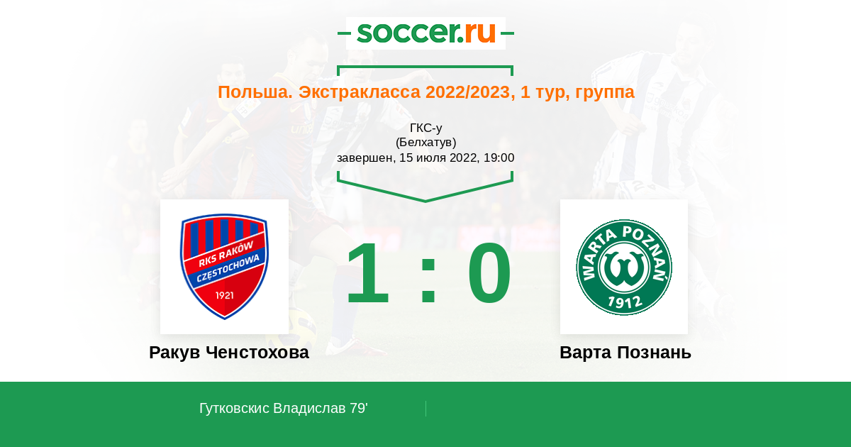 Ракув Ченстохова - Варта Познань: обзор матча 15 июля 2022