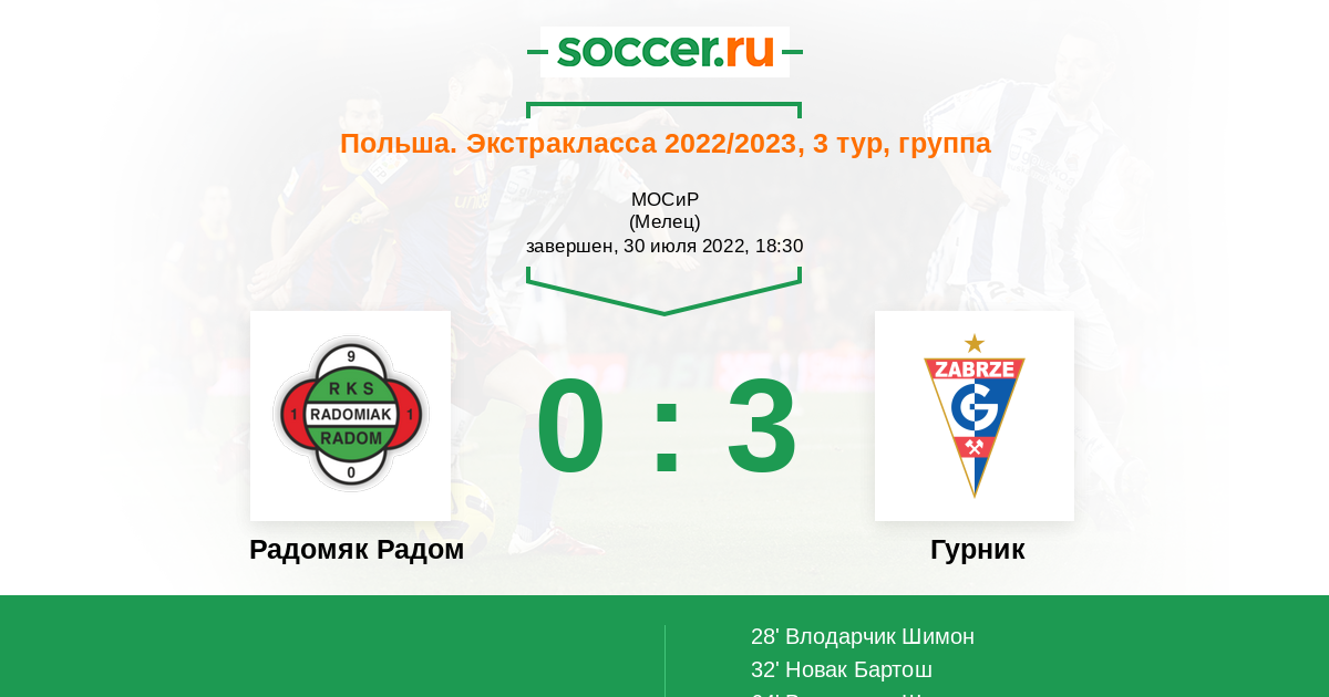 Радомяк Радом - Гурник: обзор матча 30 июля 2022