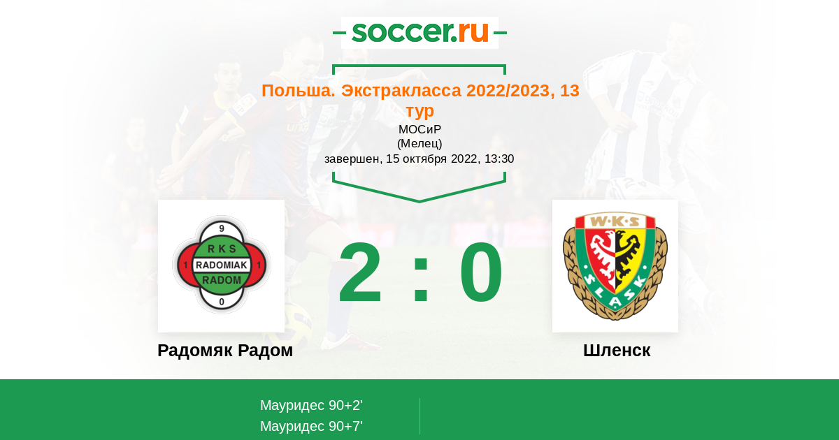 Радомяк Радом - Шленск: обзор матча 15 октября 2022