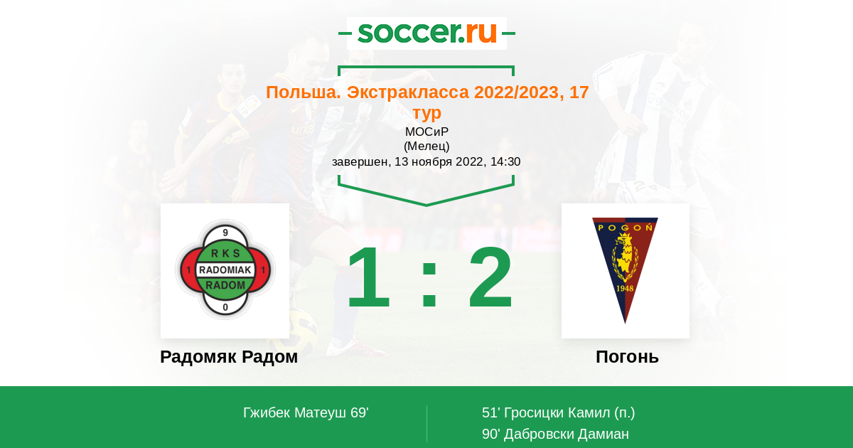 Радомяк Радом - Погонь: обзор матча 13 ноября 2022