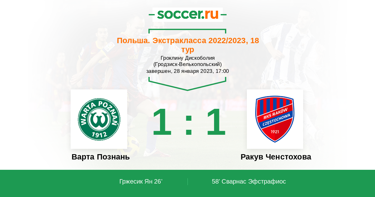 Варта Познань - Ракув Ченстохова: обзор матча 28 января 2023