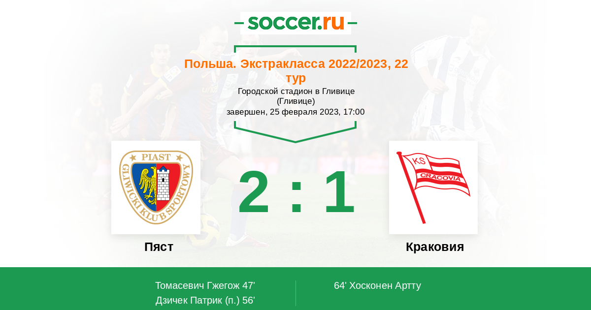 Пяст - Краковия: обзор матча 25 февраля 2023