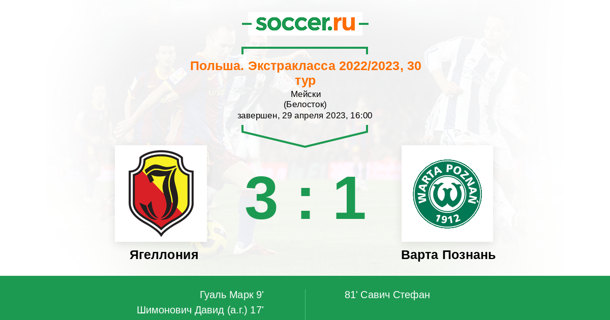 Ягеллония - Варта Познань: обзор матча 29 апреля 2023