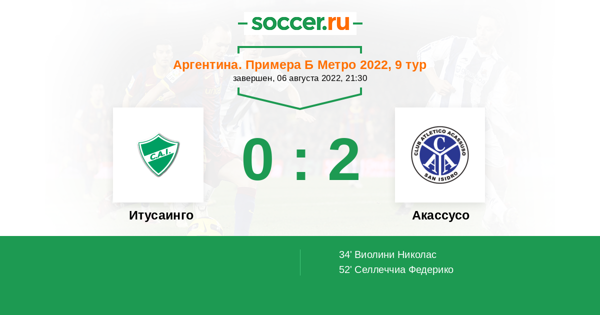 Итусаинго - Акассусо: обзор матча 6 августа 2022