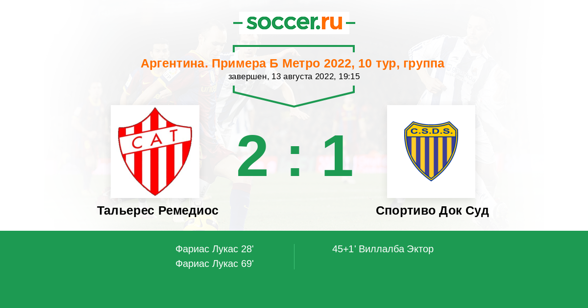 Тальерес Ремедиос - Спортиво Док Суд: обзор матча 13 августа 2022
