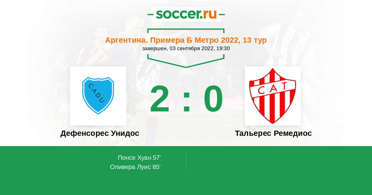Дефенсорес Унидос - Тальерес Ремедиос: обзор матча 3 сентября 2022