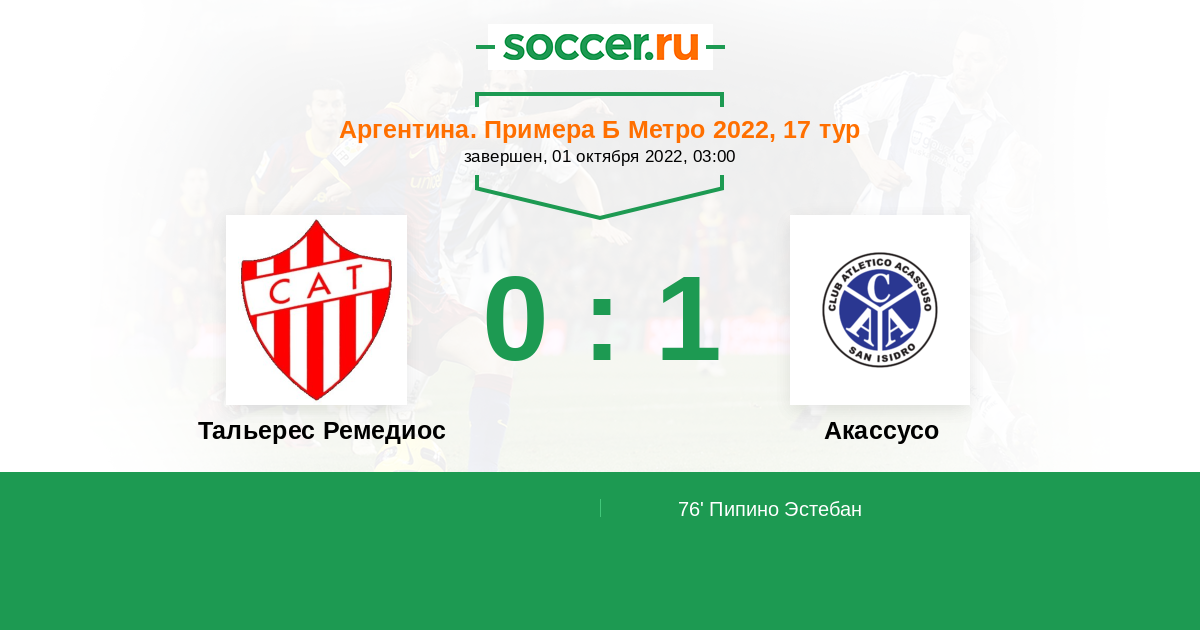 Тальерес Ремедиос - Акассусо: обзор матча 1 октября 2022