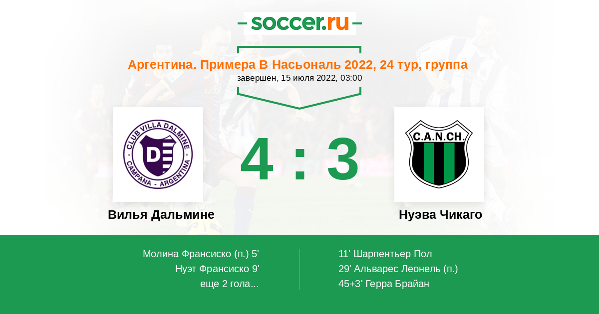 Вилья Дальмине - Нуэва Чикаго: обзор матча 15 июля 2022