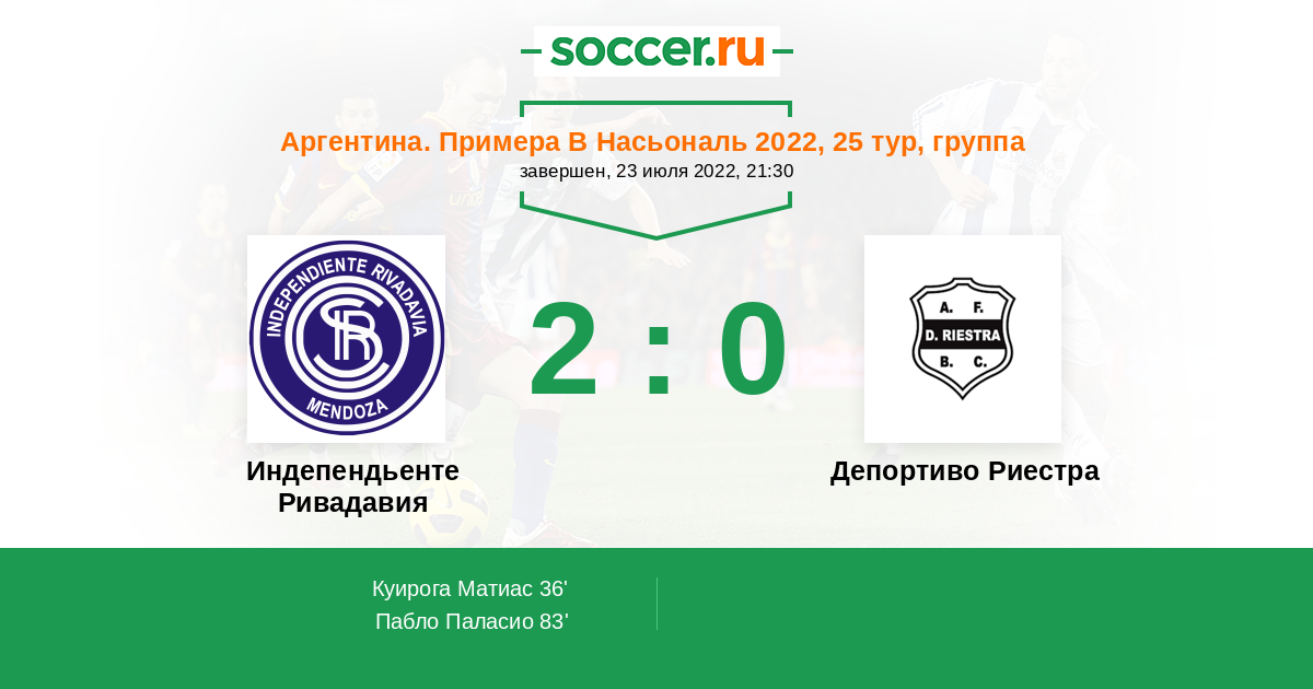 Индепендьенте Ривадавия - Депортиво Риестра: обзор матча 23 июля 2022