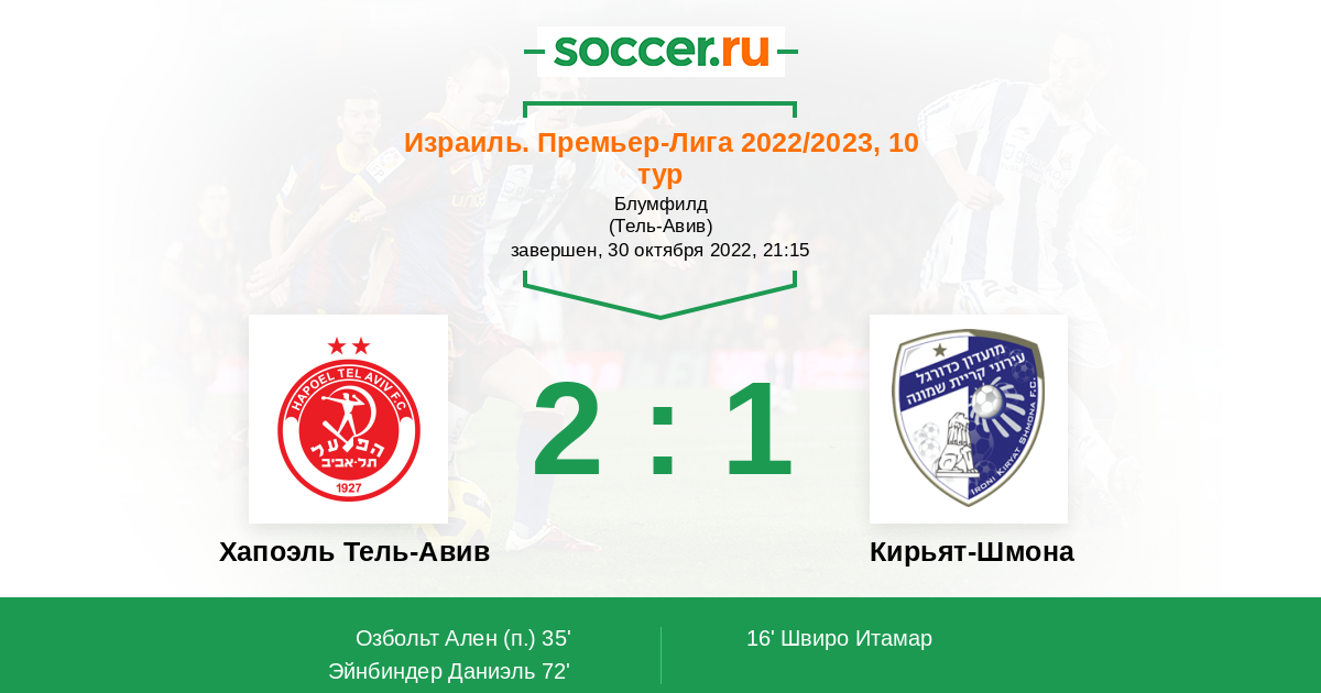 Хапоэль Тель-Авив - Кирьят-Шмона: обзор матча 30 октября 2022