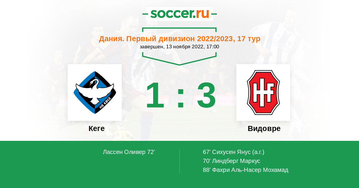 Кеге - Видовре: обзор матча 13 ноября 2022