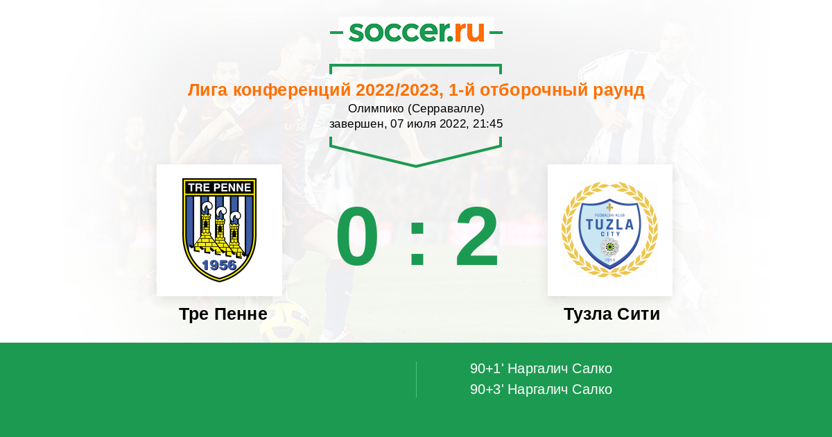 Тре Пенне - Тузла Сити: обзор матча 7 июля 2022