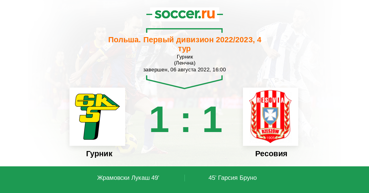 Гурник - Ресовия: обзор матча 6 августа 2022