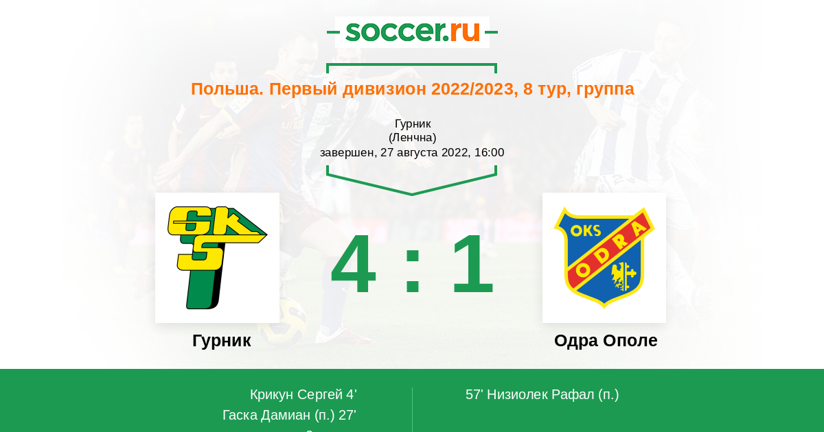 Гурник - Одра Ополе: обзор матча 27 августа 2022