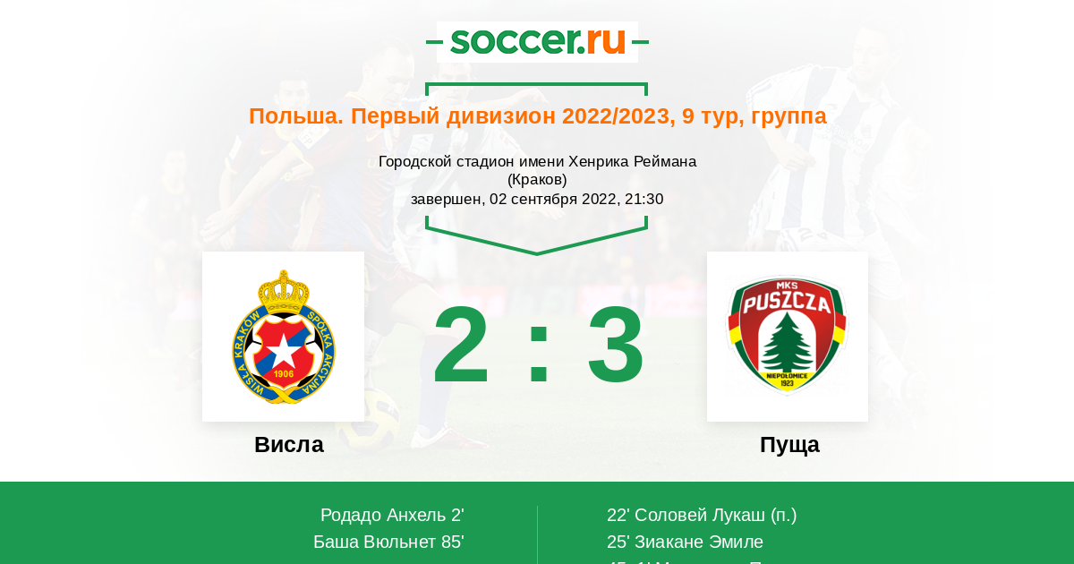 Висла - Пуща: обзор матча 2 сентября 2022