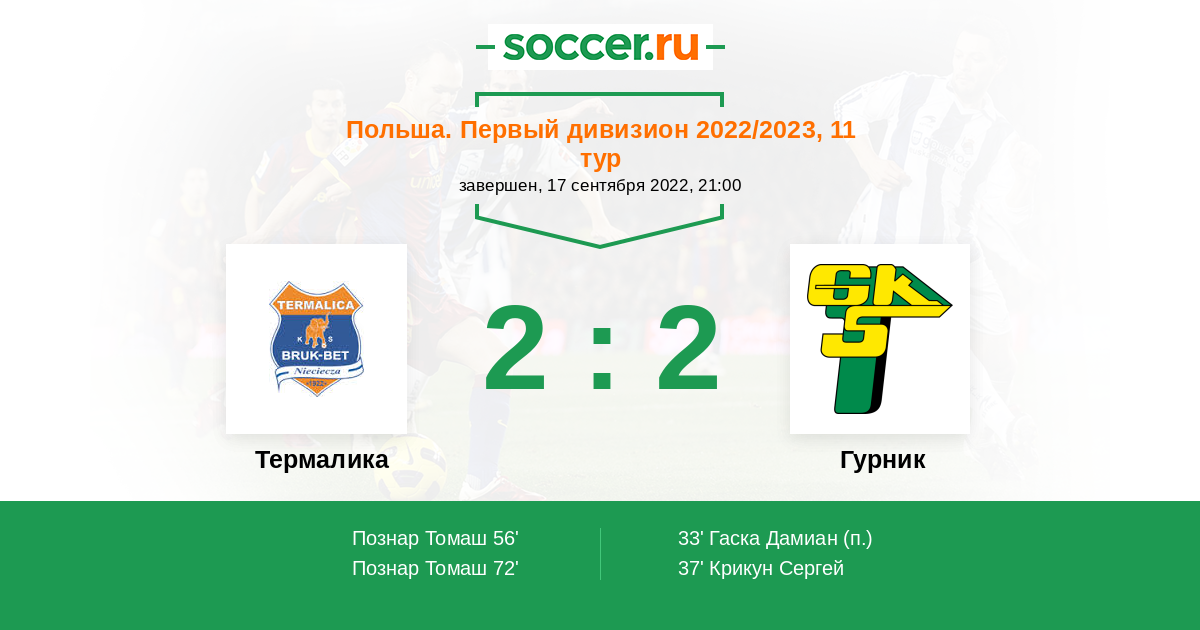 Термалика - Гурник: обзор матча 17 сентября 2022