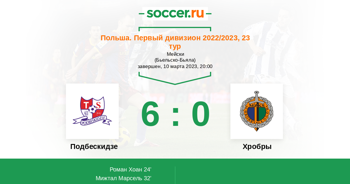 Подбескидзе - Хробры: обзор матча 10 марта 2023