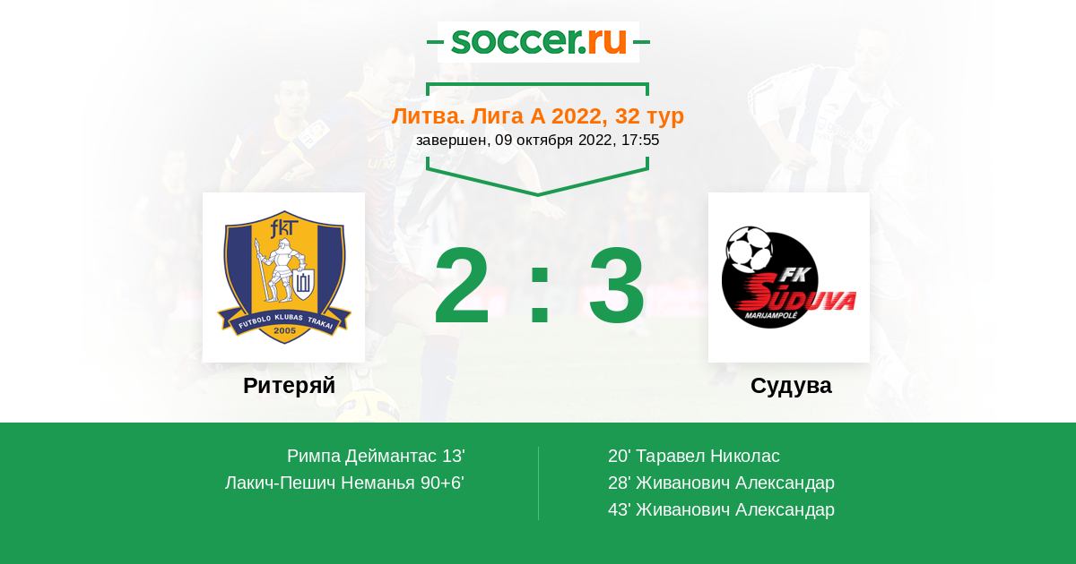 Ритеряй - Судува: обзор матча 9 октября 2022
