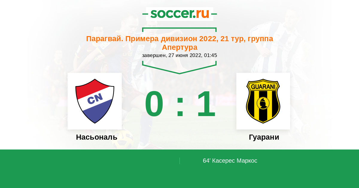 Насьональ - Гуарани: обзор матча 27 июня 2022