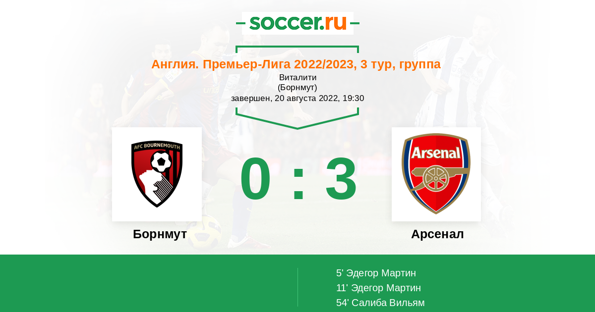 Борнмут - Арсенал: обзор матча 20 августа 2022