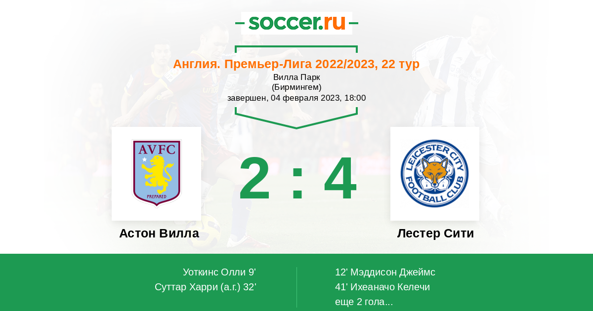 Астон Вилла - Лестер Сити: обзор матча 4 февраля 2023